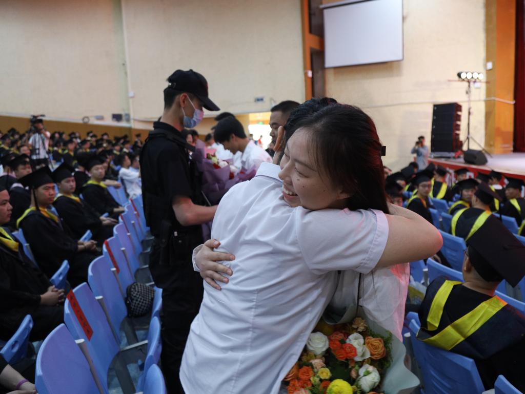 毕业生代表向家长、校友、教师、辅导员、班主任、行政管理人员、图书馆服务人员、物业管理人员、安保人员代表献花。