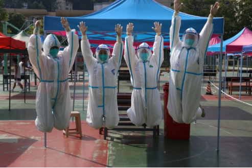 长期抗疫十分考验毅力,20天来,张缤月说:“校医务室成了最忙碌的科室,我们人人都是防疫员,个个都是战斗员”,每天高强度的工作,24小时值班,最忙的时候一天只能睡两三个小时囫囵觉,这就是落在男医生身上,恐怕也难以承受,但医务室的“铿锵玫瑰”们以顽强的毅力,硬是挺了过来,因为他们心中有着一个坚定的信念:做好校园防控,守护好师生健康。抗疫期间,医务室每天接诊出诊若干病人,出诊急诊十来起,半夜也在处理各种突发情况,接收物资、整理物资、物资出库入库、隔离室学生管理、发热学生管理以及各种巡诊,每天凌晨五点提前布置核酸采集现场工作,志愿者培训,核酸人数计算,超负荷超体力透支,好几次扛不住,他们都告诉自己,一定要坚持,一个都不能倒下。
