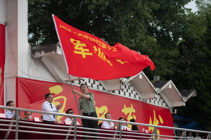随着潘良明宣布军训团开训,2022级新生开学典礼暨军训动员大会圆满结束。