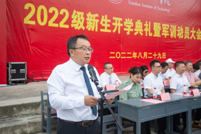 2022年8月29日,贵州理工学院2022级新生开学典礼暨军训动员大会在蔡家关校区举行,校领导潘良明、高勇、胡兴灿、林长松、张开智,校党委委员左柏州、李朋出席大会,2951名“萌新”聆听了大学第一课。