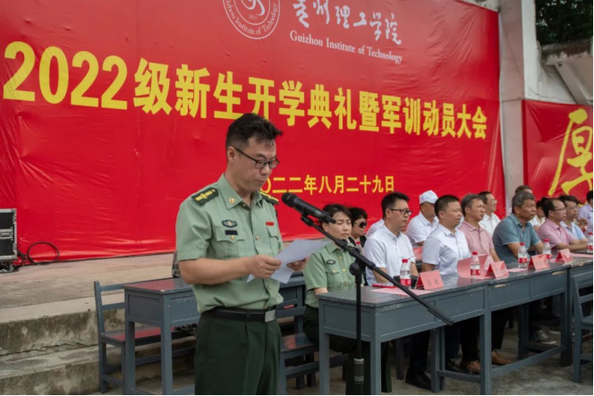 副校长、军训团团长张开智宣读《中共贵州理工学院委员会关于成立2022级学生军训团的通知》。
