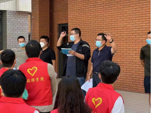 9月1日23:30,支部党员邹勇同志在贵安校区刚刚结束值班,回家途中接到电话听闻疫情发生,立即开车掉头回到学校贵安校区。“在车子掉头的时候我的脑袋里面就是疫情防控,学生工作部一定要有人在!这既是工作职责,也是一名共产党员践行初心使命的必然要求。”每天晚上工作结束后邹勇都会召集部门党员同志开会,交流白天开展工作的经验,同时制定优化第二天的工作方案。中间还发生了一个小插曲,9月6日凌晨2点,接到大数据学院辅调员李刚老师的报告,有一位同学因肾结石疼痛难忍,在花溪大学城医院治疗后仍无法缓解,父母由于疫情封控无法赶来。邹勇同志立即一起商量对策,多方联系,直到早上5点,最终120接线员为这名同学争取了一辆救护车,将这名同学及时送去花溪人民医院治疗。在没有任何准备的情况下进驻贵安校区现场开展工作20多天来,邹勇同志没有换洗衣服,就给贵安的同事借一套。他平时血压偏高,每次身边老师关心问他身体状况,他总笑着说:“没问题!可以坚守!”