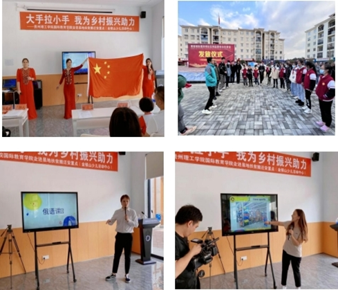 近年来,国际教育学院党总支充分发挥学院的优势资源,以易地扶贫搬迁点为着力点,组织国际学生走进赫章县、湄潭县开展服务脱贫攻坚和乡村振兴工作。2020年,国际教育学院党总支通过教师英语培训计划、教师-学生英语对点帮扶、英语演讲比赛和中外文艺汇演等活动,开展与赫章县第五中学结对帮扶的重点工作。2021年,为继续巩固脱贫攻坚成果,我院持续开展乡村振兴工作,派遣学院综合科科长陈洲到湄潭县开展驻村工作,并发挥党员先锋模范作用,动员教师党员、中外合作办学项目学生党员、入党积极分子及国际学生积极参加乡村振兴活动,接续助力乡村振兴。7月,在赫章金银山的“大手拉小手 我为乡村振兴助力”教育帮扶活动中,中外师生合唱“不忘初心”歌曲,中外合作办学项目学生表演的情景剧《王若飞》,让留学生、金银山社区的同学感受到了中国革命先烈不屈不挠、艰苦奋斗的伟大精神。党史知识竞答让同学们对中国建党历史及建党一百年的伟大成就更加了解。11月,总支组织学院14名师生党员、留学生走进湄潭县新金龙村,走进湄潭县易地扶贫搬迁点田坝社区,开展了系列帮扶活动。2022年,派遣留学生和中外合作办学学生到金银山少儿活动中心和湄潭县复兴镇新金龙村开展社会调查和社会实践活动。此外,国际教育学院党总支联合后勤管理处党总支持续举办了湄潭县、赫章县特色农产品助销活动,将湄潭县的特色农产品引入校农结合直营店销售,进一步促进农民增收。