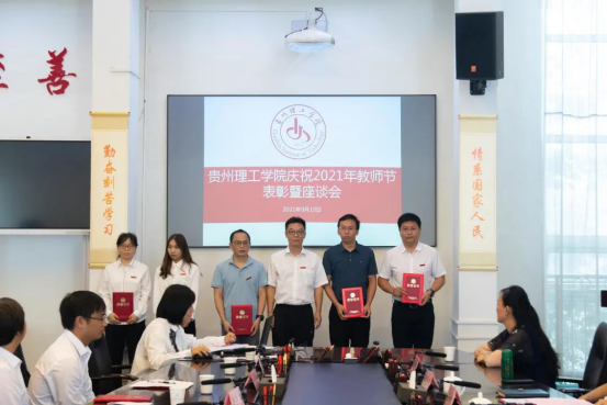 为庆祝第37个教师节,团结凝聚我校教师担负起立德树人根本任务,9月10日上午,贵州理工学院在喀斯特会议厅举行“赓续百年初心,担当育人使命”2021年教师节庆祝暨表彰会。校领导苏向东、高勇、张开智、莫立坡,校党委委员左柏州、李朋,教师代表、相关部门负责人欢聚一堂,表彰先进,共同庆祝属于教师的节日。会议由校长助理莫立坡教授主持。