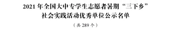 我校团委荣获“2021年全国大中专学生志愿者暑期‘三下乡’社会实践活动优秀单位”称号
