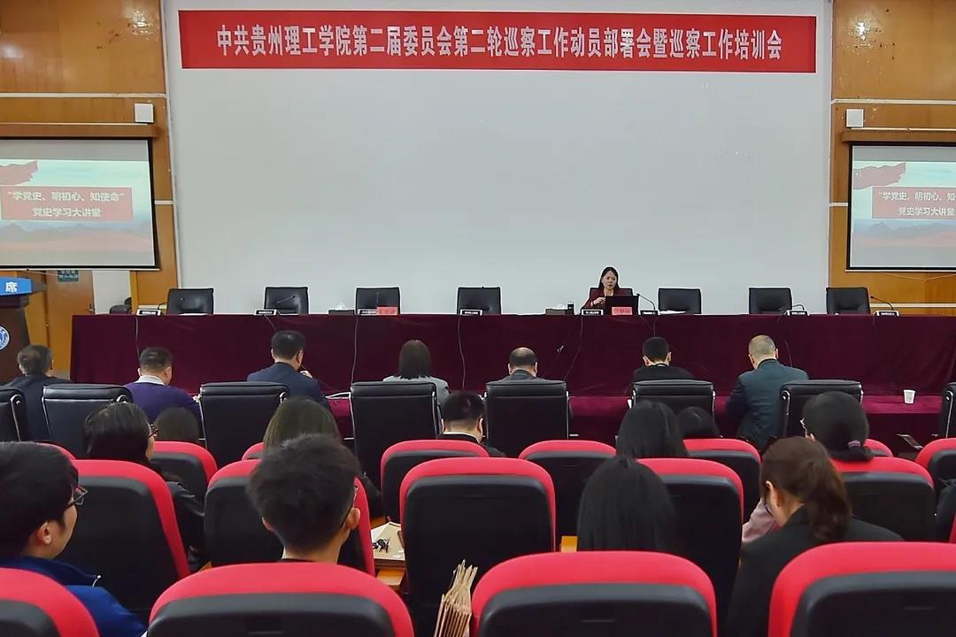 本网讯(纪检监察机关)2021年5月25日上午,第二届党委第二轮巡察工作培训会在喀斯特报告厅召开。校党委委员、纪委书记、监察专员贺梦依为第二轮巡察组、党委巡察办、纪委、监察专员办全体干部以及全校各总支、支部纪检委员作《坚持政治巡察定位,提高巡察质量》专题培训。校领导曾羽、苏向东参加培训会,会议由校党委副书记吴次南主持。