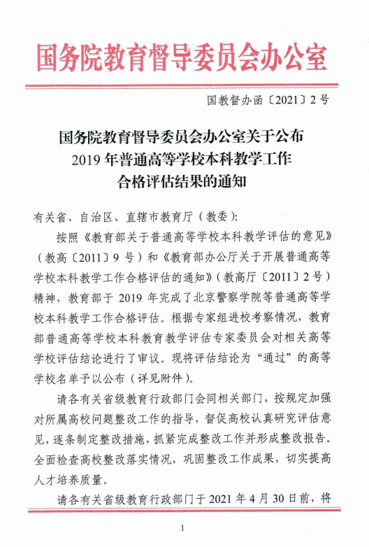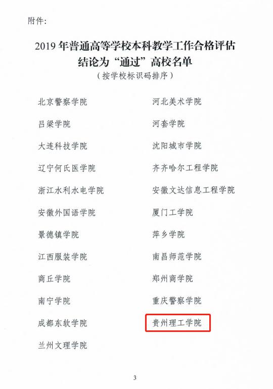 本网讯(党委宣传部 杨涛)近日,国务院教育督导委员会办公室发布了《关于公布2019年普通高等学校本科教学工作合格评估结果的通知》(国教督办函〔2021〕2号),公布了评估结果为“通过”的23所学校名单,贵州理工学院顺利通过教育部普通高等学校本科教学工作合格评估。