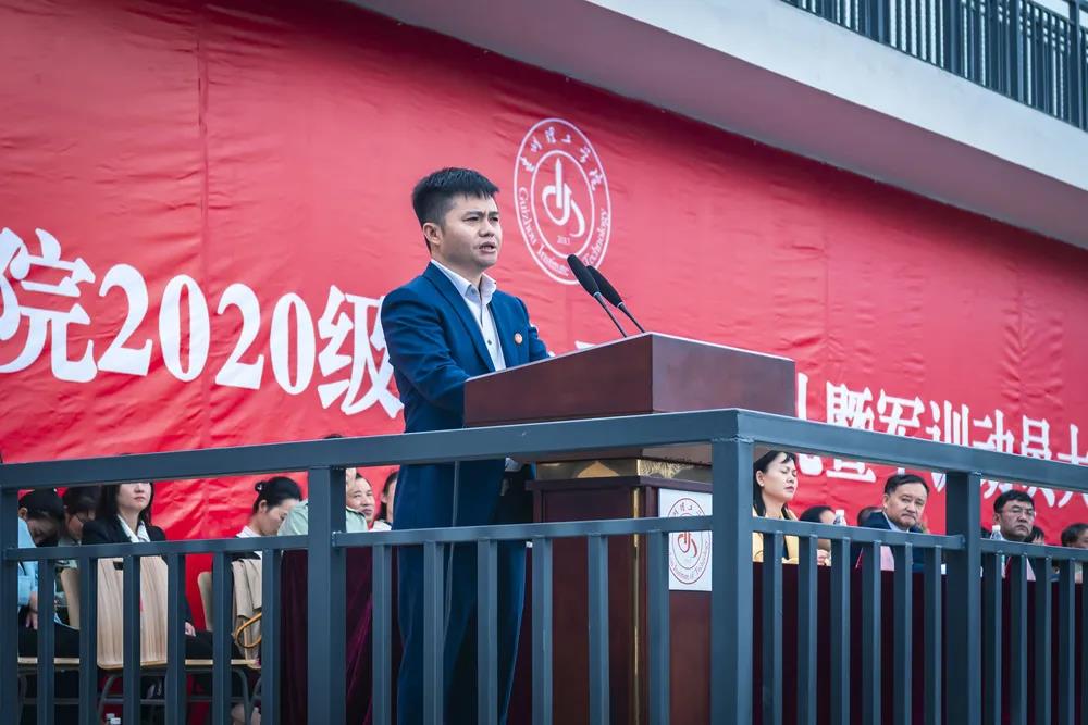 教师代表矿业工程学院徐佑林教授,2020级新生代表国际教育学院刘昊鑫同学分别发言。