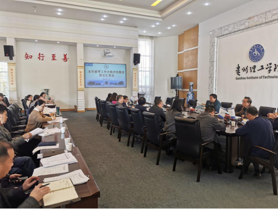 本网讯(教学质量评估监控中心  刘平/文  吕婕梅/图)11月16日下午,我校本科教学工作合格评估整改院长汇报会在喀斯特会议厅召开。党委副书记、院长苏向东出席本次会议,会议由党委委员、副院长张开智主持,组织部、教务处、人事处、教师工作处、计财处、发规处、学工部、科技处、教学质量评估监控中心、各二级学院、工程训练中心等部门负责人出席本次会议。