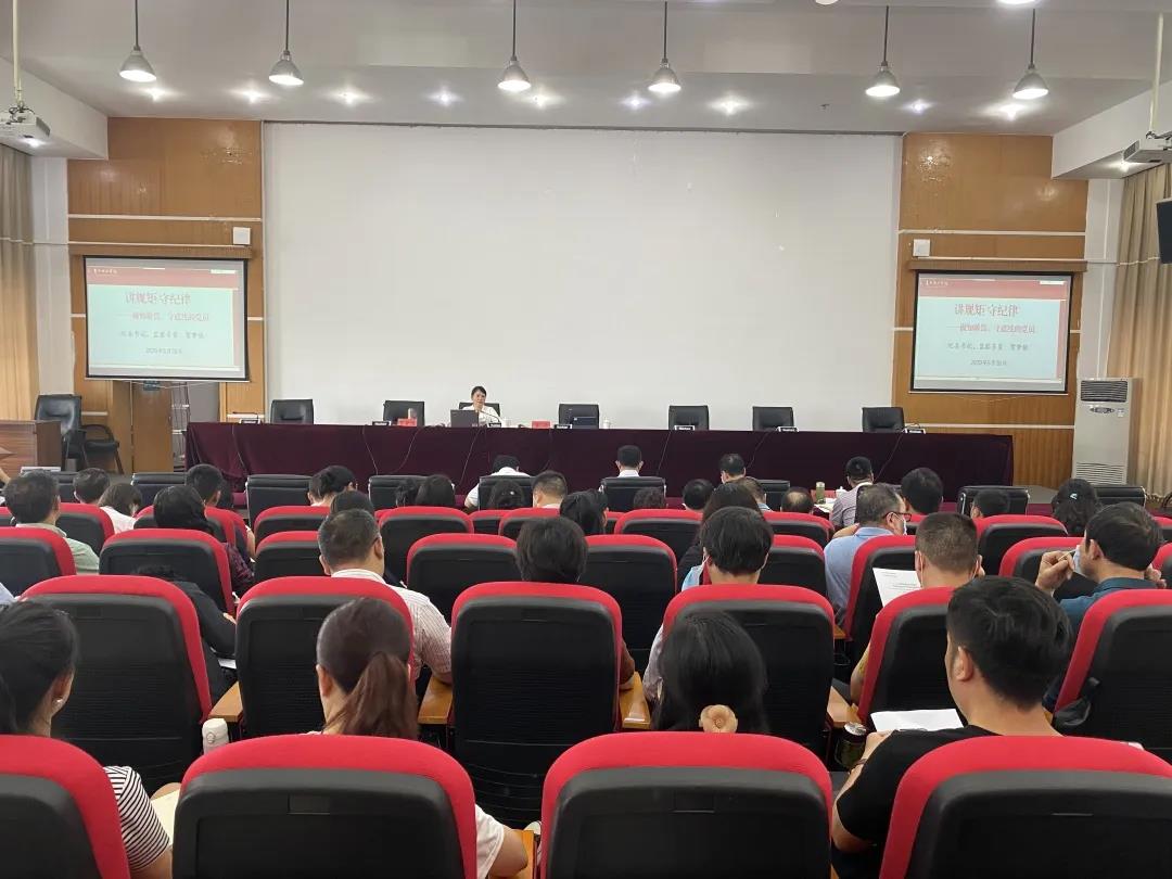 贺梦依以《讲规矩守纪律——做知敬畏、守底线的党员》为题,结合习近平总书记关于加强纪律建设的重要论述以及近年来违纪违法典型案例,对《中国共产党纪律处分条例》和《中国共产党问责条例》进行了详细阐述,让广大党员干部和教师对党的规矩的科学内涵和精神实质有了准确理解和全面把握,同时进一步增强了讲规矩守纪律的自觉性和坚定性。