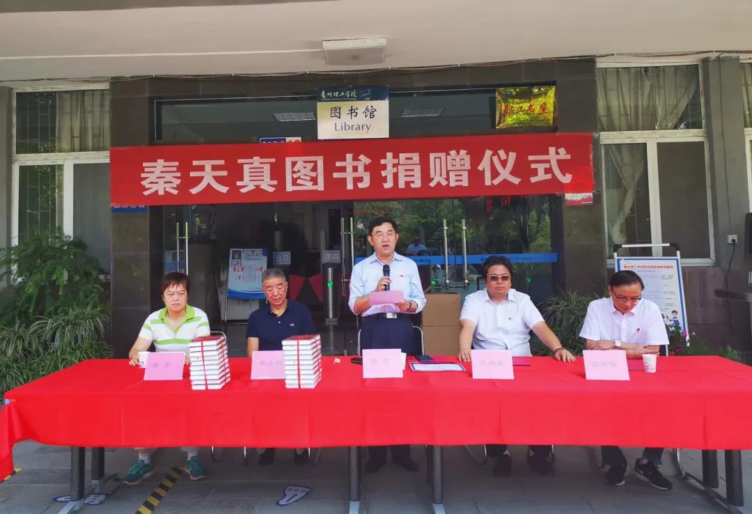 党委书记曾羽首先代表学校对秦天真先生家属向我校捐赠图书表示衷心的感谢。他说,今天我们所站在的这片土地上,曾经留下过秦天真的足迹,秦先生为贵州发展做出了突出贡献,这次捐赠的图书——秦天真回忆录《风雨八十年》,体现了他对贵州工业发展的满腔深情与无限眷恋。学校一定会用好这批图书,让秦天真先生的革命精神照亮理工学子的奋进之路,让他的贵工情怀在理工学院的沃土中扎根!