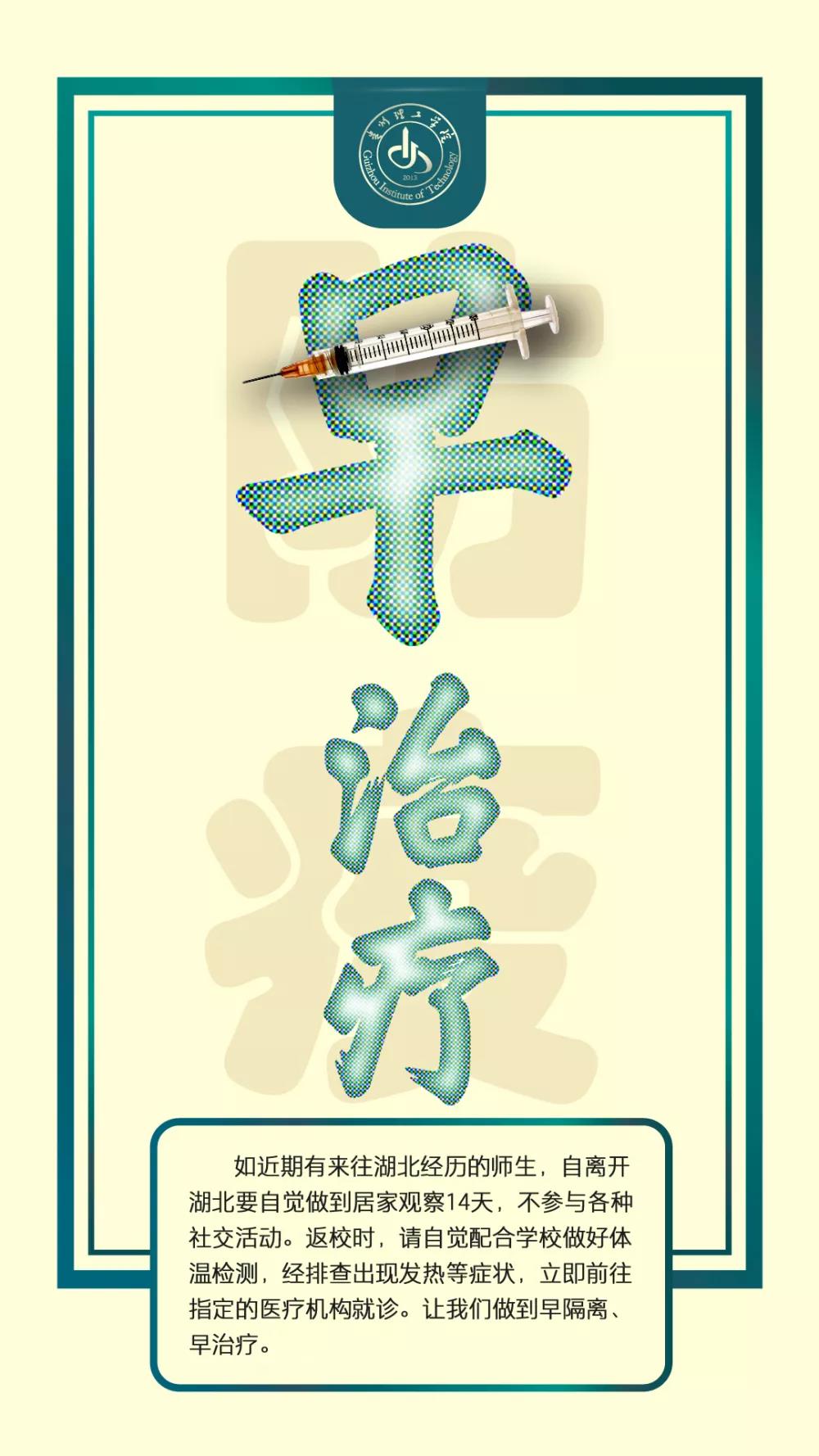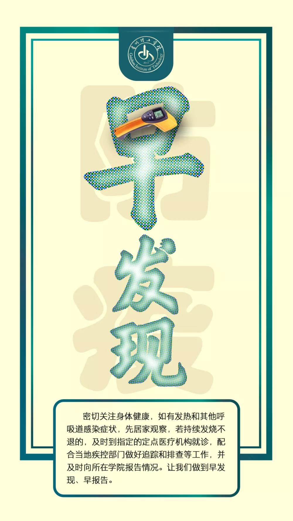 设计说明:在这突如其来的疫情中,全国人民都在奋战抵抗病毒,面对病毒我们需要做到四个”早”,早发现、早报告、早隔离、早治疗,做到这四个”早”,保护自己,也保护他人。作品整体色彩为明亮温馨的浅黄色和绿色,”防疫”作为背景,利用相关性图形替代文字中“早”字的一笔,突出早的重要性及意义,作品下方为防疫措施,作品整体以科普宣传为主,向人们宣传如何做好防疫战,愿早日击退病毒。