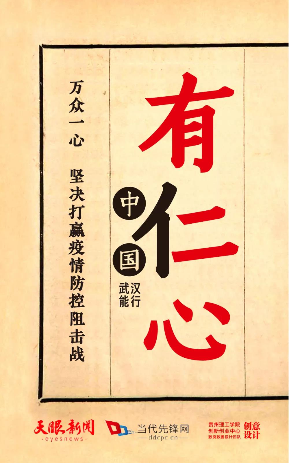 设计说明:武汉新型冠状病毒顾然可怕,但是我们中华民族在困难面前从来不低头,永不畏惧。因为,我们中国人有仁心、有爱心、有信心、有决心。作品也是用中国处方签纸元素和汉字结构进行新组合,表达了“中国人,有仁心、有爱心、有信心、有决心,武汉能行”的主题内容,我们相信,万众一心,能够打赢这场疫情防控阻击战。