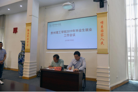 本网讯(招生就业处 靳力)7月9日下午,贵州理工学院2019年毕业生就业工作会议在喀斯特报告厅召开。贵州理工学院党委书记曾羽,党委副书记张波出席会议,各毕业生学院党总支书记、院长及相关责任人参加会议。