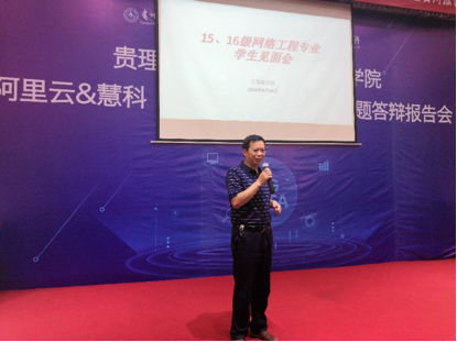梁杰代表学校向2015、2016级网络工程专业的同学对此次划转调整工作给予的理解支持以及配合表示感谢,同时希望同学们进入到大数据学院后,好好学习相关专业知识,夯实基础,将来更好地服务贵州社会经济发展,服务全国“互联网+”大数据产业发展,做社会主义现代化的接班人,为实现中华民族伟大复兴“中国梦”而努力奋斗。