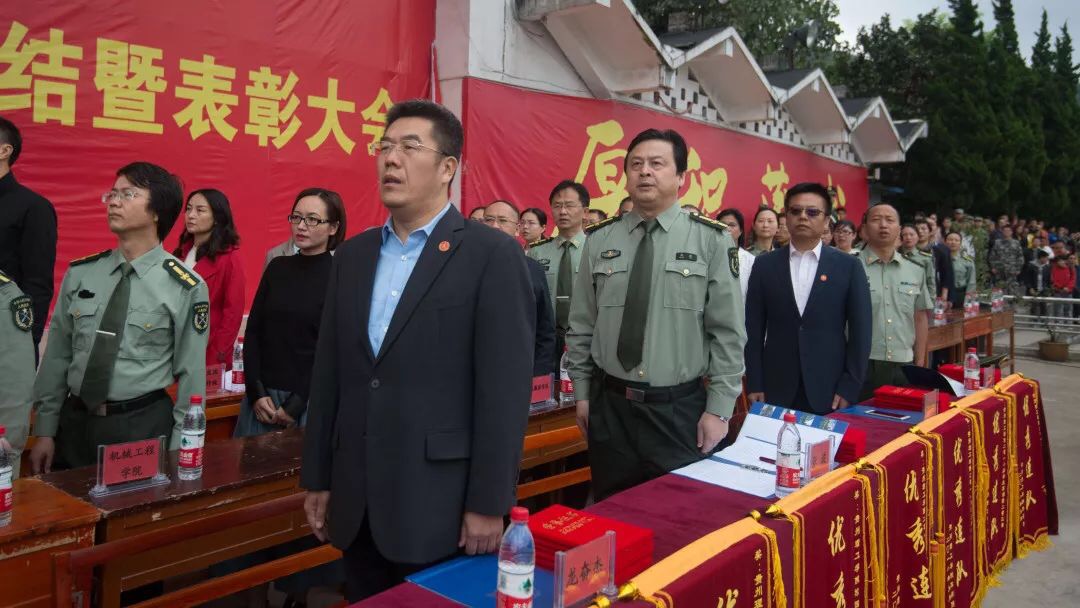 汇报表演结束后,大会对一营五连等10个优秀连队、刘艺等10名优秀教官、于茂竹等6名优秀指导员及杨林等293名优秀学员军训先进集体和先进个人进行了表彰。