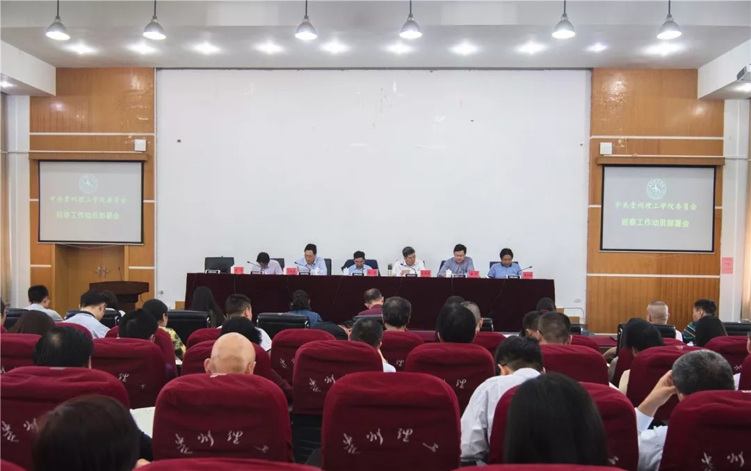 本网讯(校纪委  张妤)为进一步落实学校党委从严治党主体责任,夯实学校党委管党治党政治责任,根据中央、省委关于开展巡视巡察工作的有关要求和省教育厅关于各高校开展内部巡察相关指示精神,5月15日下午,中共贵州理工学院委员会巡察工作动员部署会在喀斯特报告厅召开。校领导曾羽、龙奋杰、张波、王建平、苏向东、李滚出席会议,各部门主要负责人、各学院、教学部党政主要负责人、校巡察办和巡察组全体同志参加会议。会议由校党委副书记张波主持。