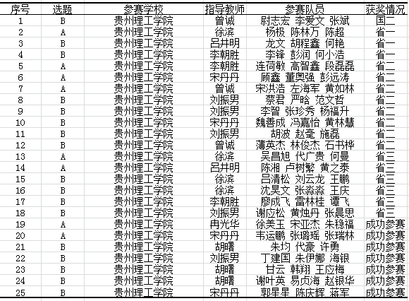 本网讯(理学院 周靖南)日前,2017年全国大学生数学建模竞赛落下帷幕,我校学子在竞赛中获得了国家二等奖1项,省级一等奖3项,省级二等奖8项,省级三等奖6项的优异成绩,获奖率高达83.3%,在全省高校名列前茅。