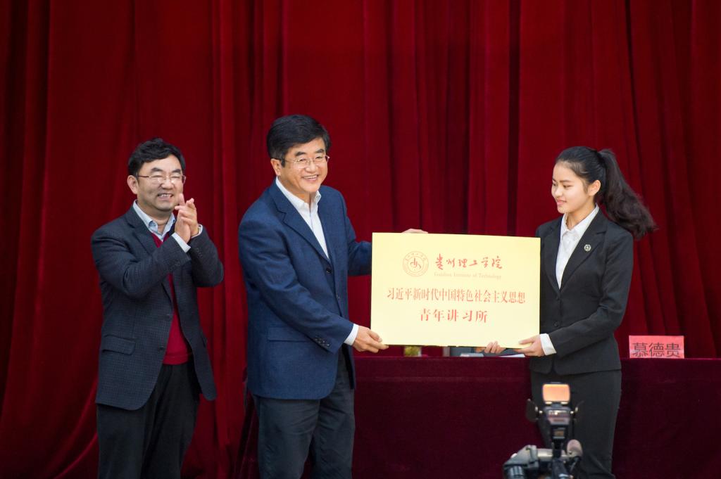 报告会后,慕德贵为“贵州理工学院习近平新时代中国特色社会主义思想青年讲习所”授牌。