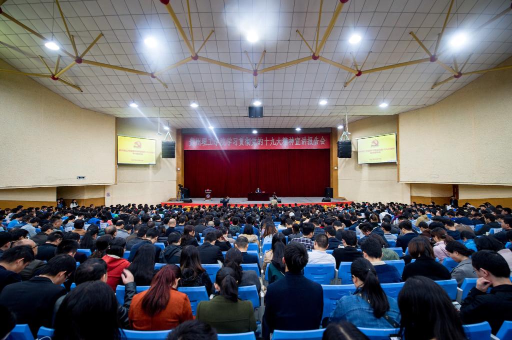 省教育厅党组成员、省委教育工委副书记赵廷昌,团省委副书记徐锡广,贵州理工学院校领导曾羽、梁杰、张波、王建平、宋建波、苏向东、张清江与学校处科级干部、教师代表、学生代表、“贵州理工学院习近平新时代中国特色社会主义思想青年讲习所”全体成员1300余人聆听了报告。