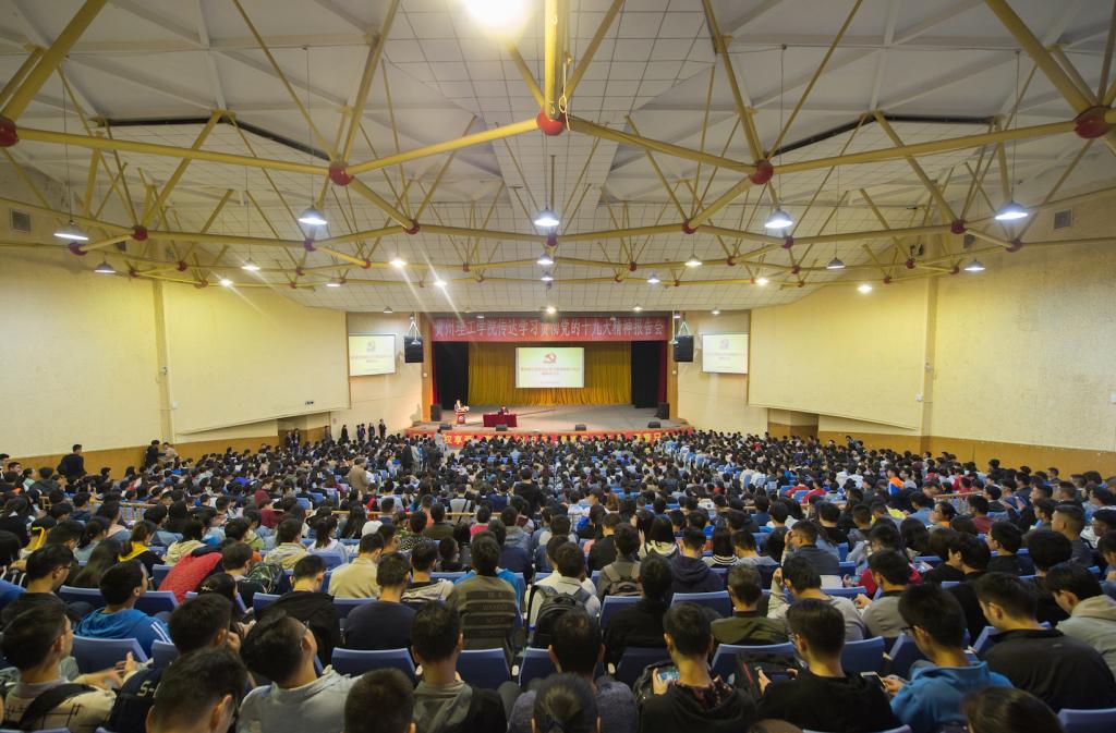 本网讯 10月30日19:00,贵州理工学院传达学习贯彻党的十九大精神报告会在逸夫大礼堂举行,十九大代表、共青团贵州省委书记涂妍走进理工校园宣讲十九大精神。报告会由贵州理工学院党委书记曾羽主持。团省委相关部室、各省属高校团学干部、贵州理工学院教职员工和青年学生1300余人参加。