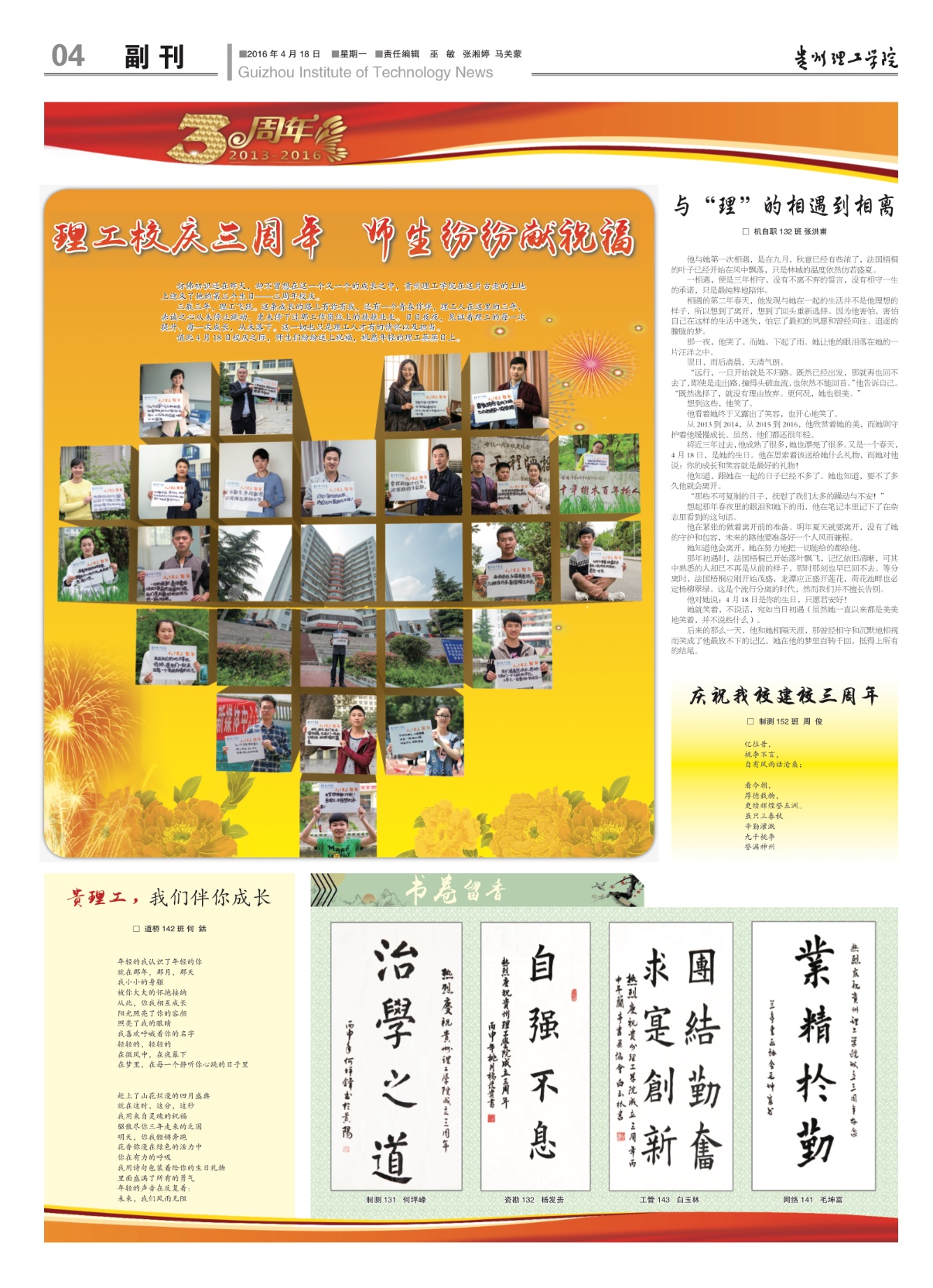 本网讯(宣传部  王爽)近日,中国高校校报协会公布了2016年度中国高校校报好新闻评选结果,我校化工学院化学工程与工艺141班霭均同学的参评作品《围棋国手马晓春九段走进理工座谈对弈》荣获新闻摄影类一等奖;宣传部巫敏老师责编的《贵州理工学院校庆专刊》荣获版面类三等奖。