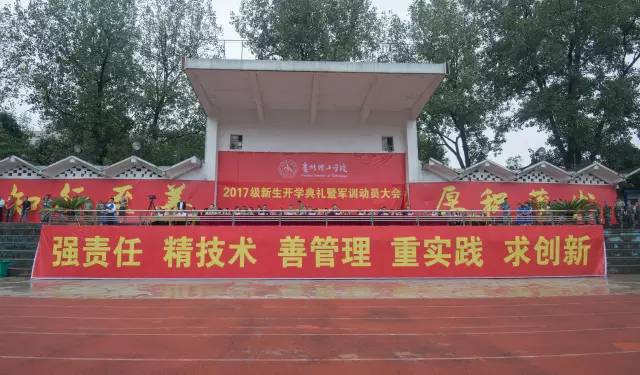 在旋律激昂、催人奋进的校歌声中2017级贵州理工学院开学典礼暨军训动员大会落下帷幕。
