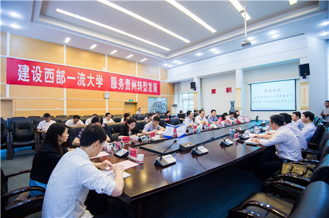 本网讯(张俊丽 万静)6月14日,南京航空航天大学党委书记郑永安率校党政办、校团委负责人等一行到我校考察交流。贵州理工学院校领导曾羽、王建平、苏向东、张清江陪同来宾考察了我校“易班”工作站、电力大数据重点实验室、BIM实验室,并进行了交流座谈。座谈会由副校长王建平主持。