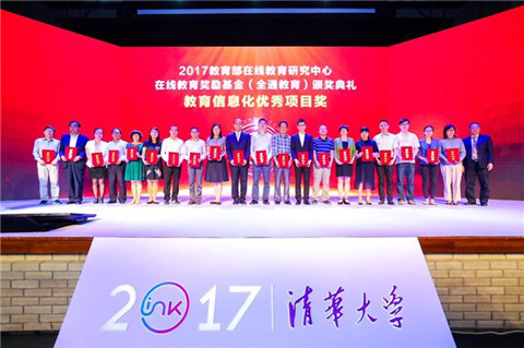 本网讯(电信学院  陈燕秀)2017年5月10日,LINK2017在线教育论坛暨教育部在线教育研究中心在线教育奖励基金颁奖典礼在清华大学隆重举行。教育部相关领导、国内外知名专家学者、高校校长、优秀教育企业家等近千人出席论坛,共同围绕“连接·共享·智能化”进行了深度研讨和思想碰撞,一起探索未来智慧教育。论坛开幕式由教育部在线教育研究中心副主任、清华大学副秘书长聂风华主持。
