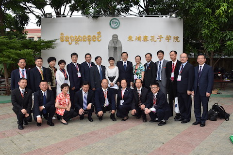 6月22日,团组赴柬埔寨参加2017贵州柬埔寨“牵手未来”大学校长高峰会和贵州(柬埔寨)商务代表处揭牌仪式。在柬访问的孙志刚省长出席仪式,共有来自贵州和柬埔寨的43所高等院校负责人及师生代表参会。