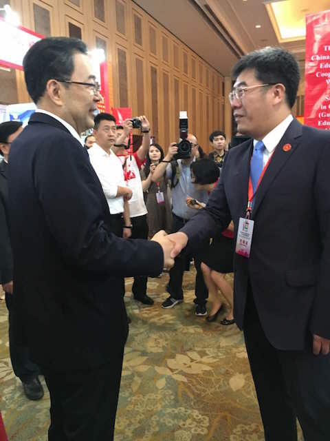 本网讯(国际交流与合作处  杜玉红) 6月20日,第十届中国-东盟教育交流周系列活动重要项目——“留学中国”(贵州)教育展在印尼雅加达举行。中共贵州省委副书记、省长孙志刚,中国驻东盟大使徐步,贵州省教育厅厅长王凤友,东南亚教育部长组织秘书长加多特等出席开幕式并发言。作为贵州省20所高校代表之一,我校校长龙奋杰率国际交流与合作处一行3人参加教育展。