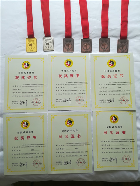 本网讯(体育教学部 侯生辉)6月3日至6日,第十三届全运会群众比赛暨2017年太极拳健康工程系列活动太极拳公开赛在都江堰市飞龙体育馆举行。我校此次共选拔派出四名运动员代表参赛。赛前经过长期集中训练,队员们克服身体疲劳,反复练习,对每个动作不断揣摩、精益求精。在比赛中,虽是与练习太极拳十余年的老队员同场竞技,但我校队员放松心态,稳定发挥,最终取得优异成绩,获传统杨氏太极拳项目二等奖和三等奖,在传统杨氏太极剑项目中获得一个一等奖和三个三等奖。
