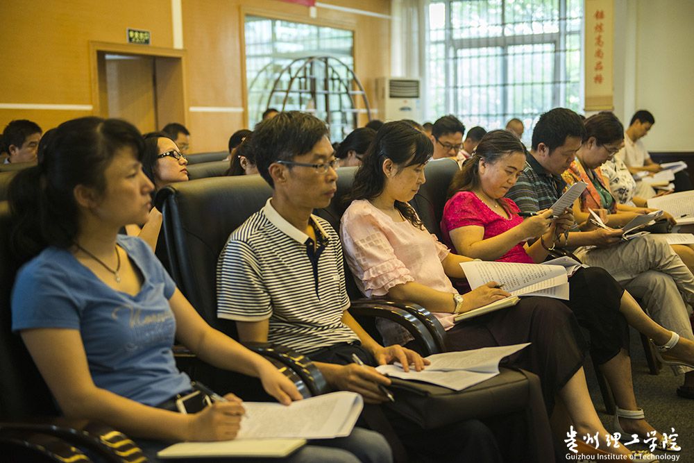 会议强调,省委工作会议是对贵州未来发展的一次重要战略部署,部署得“快”,提出的贯彻落实意见“准”,克志书记和敏尔省长的讲话“实”,全校要紧 密团结在以习近平同志为核心的党中央周围,牢记省委、省政府领导的殷殷嘱托,深化改革,锐意创新,埋头苦干,同心攻坚,后发赶超,守住底线,走出一条具 有理工特色的新路,为早日把贵州理工学院建成“西部一流、人民满意的高水平理工大学”而努力奋斗。