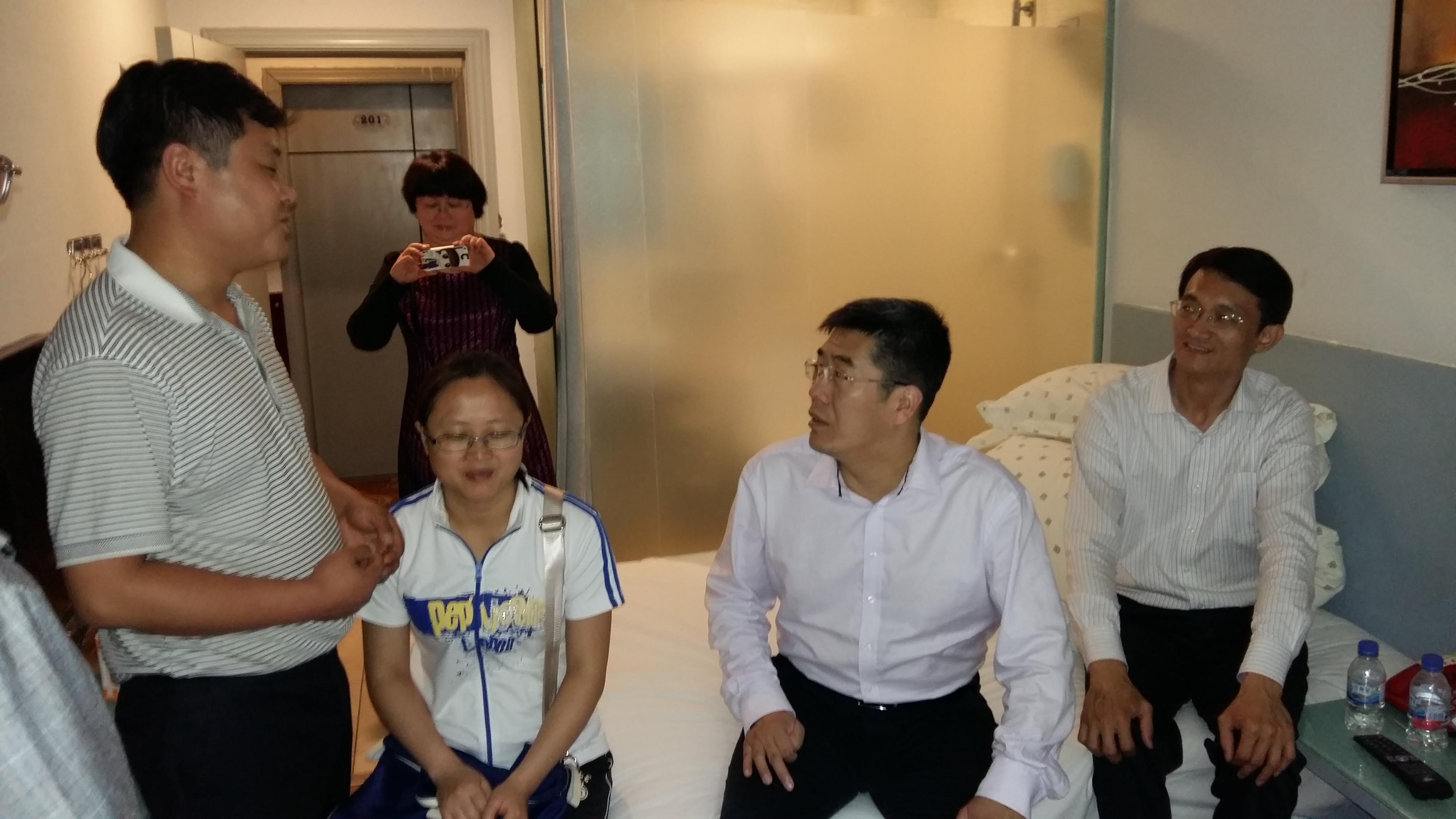 本网讯(工会 熊远兴)5月21日上午,校长龙奋杰、校党委副书记、工会主席宋广强到政府临时安置点“荷泰酒店”,看望慰问我校受灾职工陆定军、王世蓉一家,带去了学校及广大师生的关怀。校工会副主席熊远兴、电工学院院长文方及相关同志一道参加慰问。