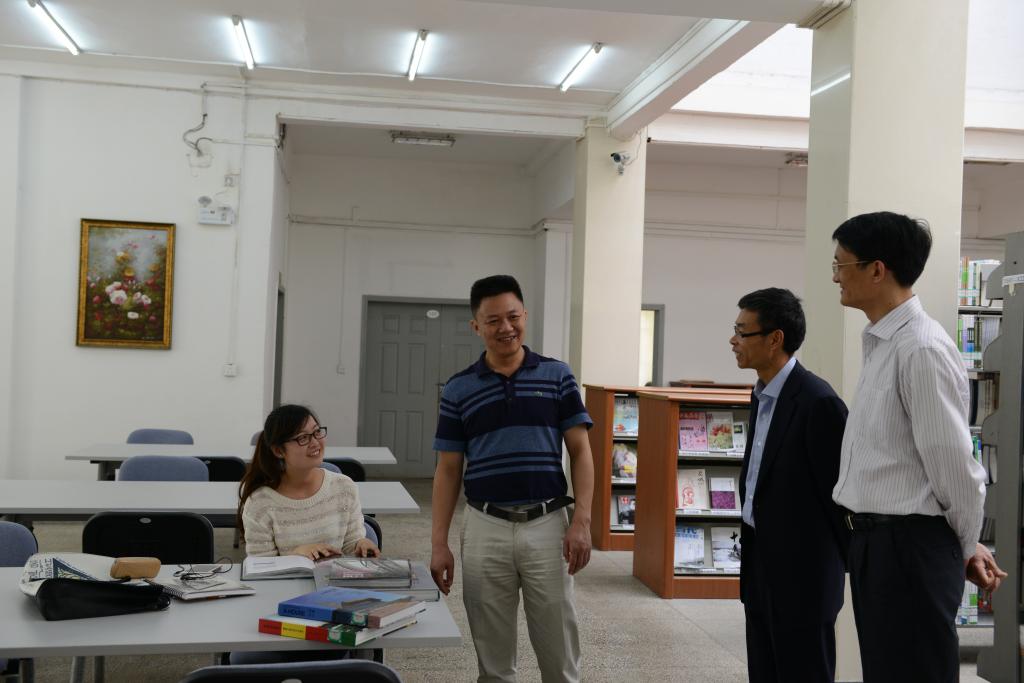 座谈会后,在校党委副书记宋广强陪同下,杨勇一行参观了我校教学楼、实验室及图书馆。
