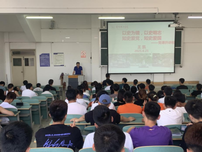 本网讯(体育学院 莫聘)为庆祝中国共产党成立100周年,深入推进体院学子党史学习教育工作有效开展,学深悟透,6月22日下午,体育学院党总支副书记王凯于蔡家关校区第三教学楼416开展党史学习教育“党课开讲啦”专题党课,引导体院学子弘扬红色精神,重温革命历史,牢记初心使命。