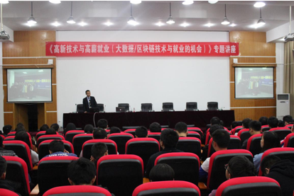 本网讯(招生就业处 申修美)为进一步加强毕业生就业指导,帮助学生更好地了解大数据等高新技术相关就业知识,提前做好就业准备,把握就业机会,提升自我竞争力,12月3日,我校特邀美联航达共同创始人,猎格游娱、呦呦直播技术总监徐彤先生在喀斯特报告厅为我校大学生作《高新技术与高薪就业(大数据/区块链技术与就业的机会)》专题就业指导讲座。