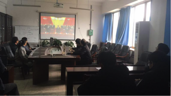 本网讯(机械工程学院 吴艳英/文 卢缨/图)12月18日上午10:00,学院党总支书记熊远兴、院长陈海虹、副院长周知进带领学院全体教职工在学院1001会议室集中收看庆祝改革开放40周年大会电视直播。