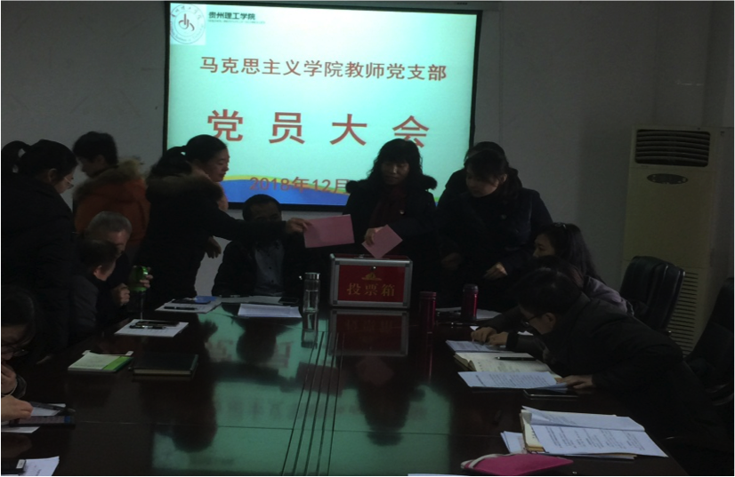 首先,王香莲同志代表上届支部委员会作工作报告,她全面总结了支部三年来的主要工作及取得的成绩、存在的主要问题,并就今后工作提出了目标和思路。随后,会议审议通过了《中共贵州理工学院马克思主义学院教师支部委员会换届选举办法》,并严格按照换届选举相关规定和程序选举产生了新一届教师支部委员。