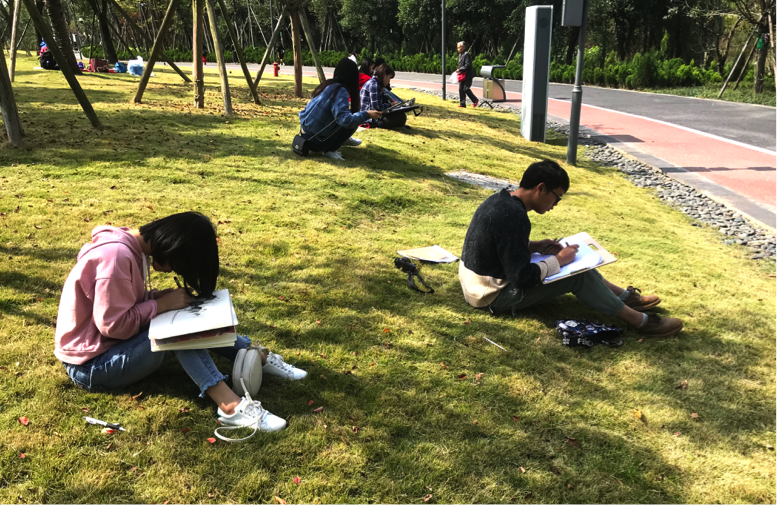 10日至17日,在指导老师郑波、杨宏涛、马庚的带领下,同学们先后对成都锦里、宽窄巷子、太古里等地的公共空间设计,以及天府公园、麓湖等地的景观设计进行了资料收集、设计解析和手绘写生。在梵木创艺区,四川大学设计系副主任许亮博士,四川大学设计系主任周炯焱博士、创艺园区运营管理总经理黄啸林给同学们带来精彩讲座,让同学们对环境设计及设计市场有了更深的认识。