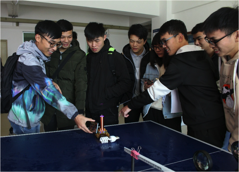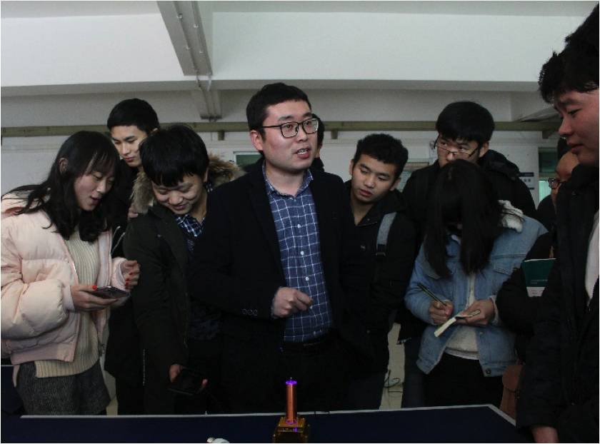 在王越细心地讲授了实验原理以及做了相关的实验之后,同学们跃跃欲试,轮流动手操作,亲自体验科技的神奇。