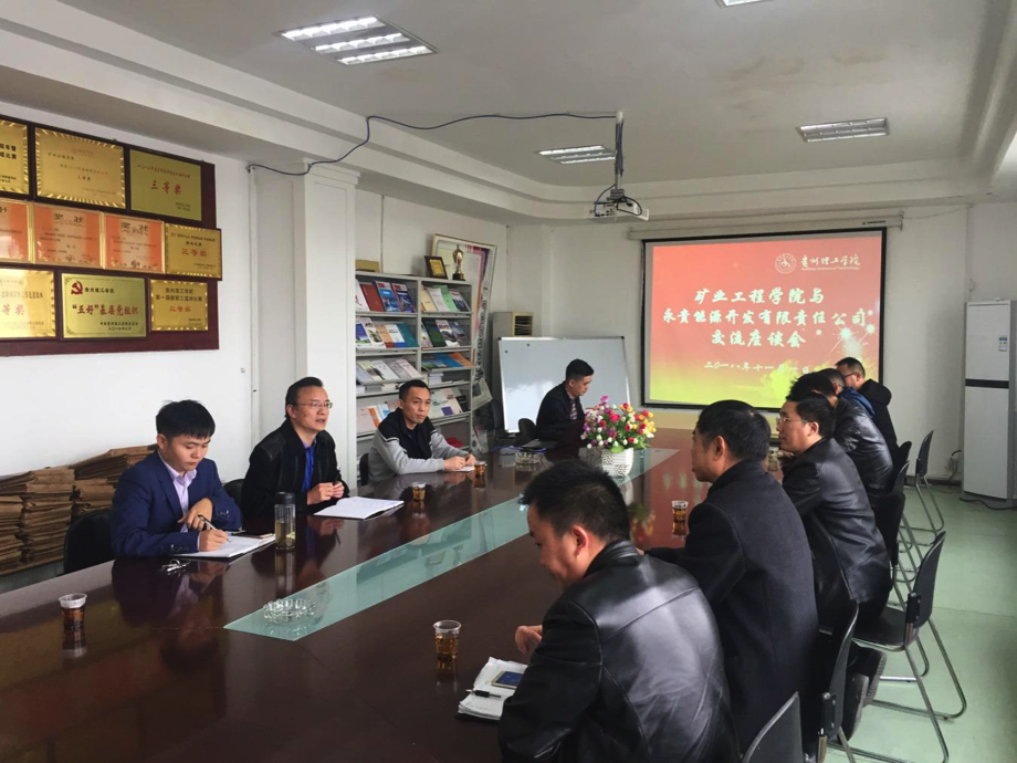 本网讯(矿业工程学院 魏玮/文)11月1日下午,永贵能源开发有限责任公司副总经理何国益一行来到矿业工程学院,校企双方就教学、科研等各方面的合作交流进行座谈。座谈会由矿业工程学院院长张开智主持,部分教学科研骨干教师参会。