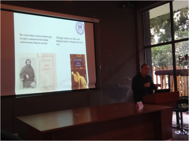 本网讯(大学外语教学部 王艳/文 王艳/图)11月6日下午,清华大学外文系博士生导师封宗信教授应邀在蜂巢众创园为大外部教师做了题为“符号学视角下的翻译、回译与经典解读”的专题讲座。讲座由大外部教师周华北主持,大外部专任教师参加此次讲座。