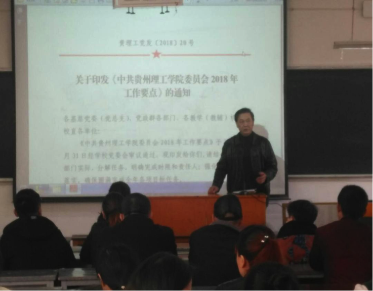 会上,集中学习传达了《中共贵州理工学院委员会2018年工作要点》《贵州理工学院2018年行政工作要点》。