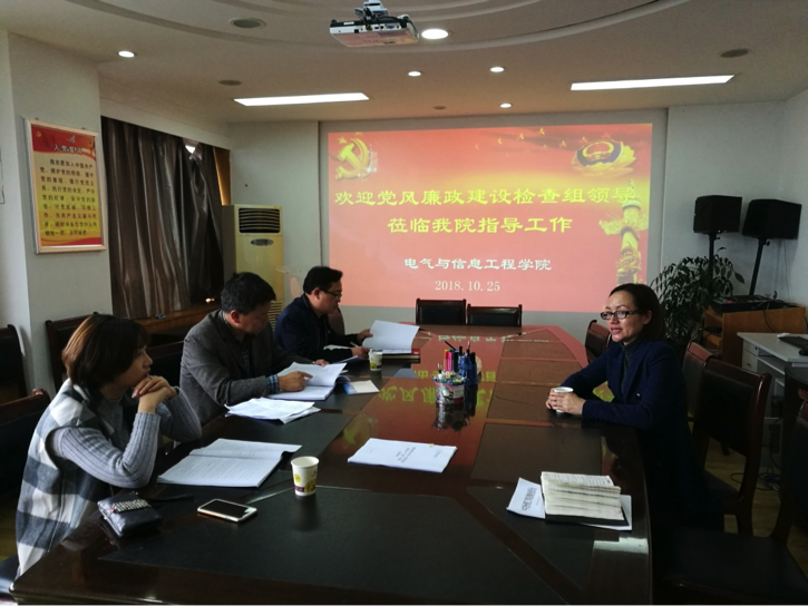 本网讯(电气与信息工程学院 刘帆/文)10月25日下午,学校党风廉政建设工作检查组领导张妤一行走进电气与信息工程学院,检查指导该院党风廉政建设工作建设落实情况,学院党总支书记王婷婷热情接待了检查组一行。