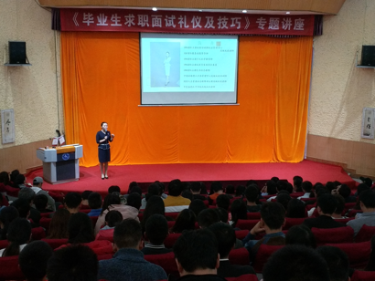 本网讯(招就处 申修美 韦兴才/文 图)为加强对学生就业的指导,进一步提高大学生就业能力和就业技巧,10月23日,校招就处在逸夫小报告厅举办“求职面试礼仪及技巧”专题讲座,本次讲座特邀贵州汇思学吧教育咨询有限公司CEO宁琴辉、国际注册礼仪培训认证管理中心高级礼仪师张露担任主讲,学校2019届毕业生300余人参加聆听。