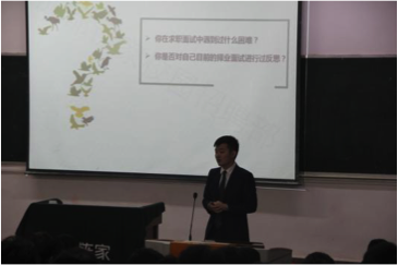芮湘川以阿里巴巴、腾讯等公司的招聘中收到的简历和部分面试实例引入讲座主题,深入解析面试环节,列举出当代大学生简历制作和面试中的不足之处,并给予优化意见。