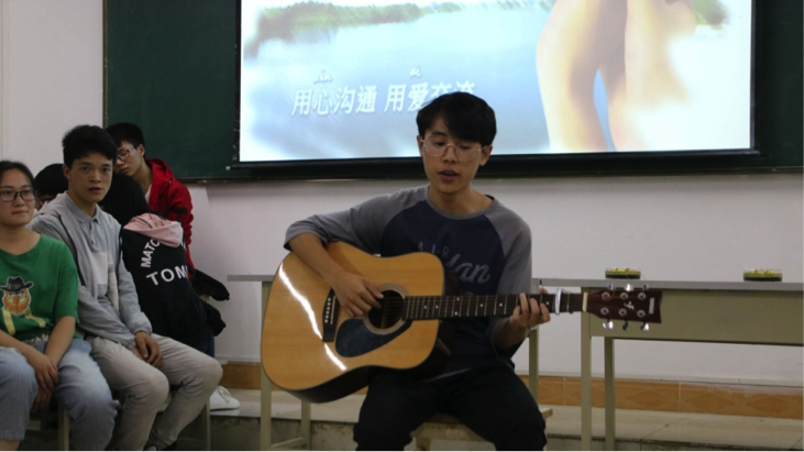 在《成都》等美妙的歌声下同学们一起歌唱,现场师生不禁纷纷通过歌唱、朗诵等一展才华,气氛热烈。
