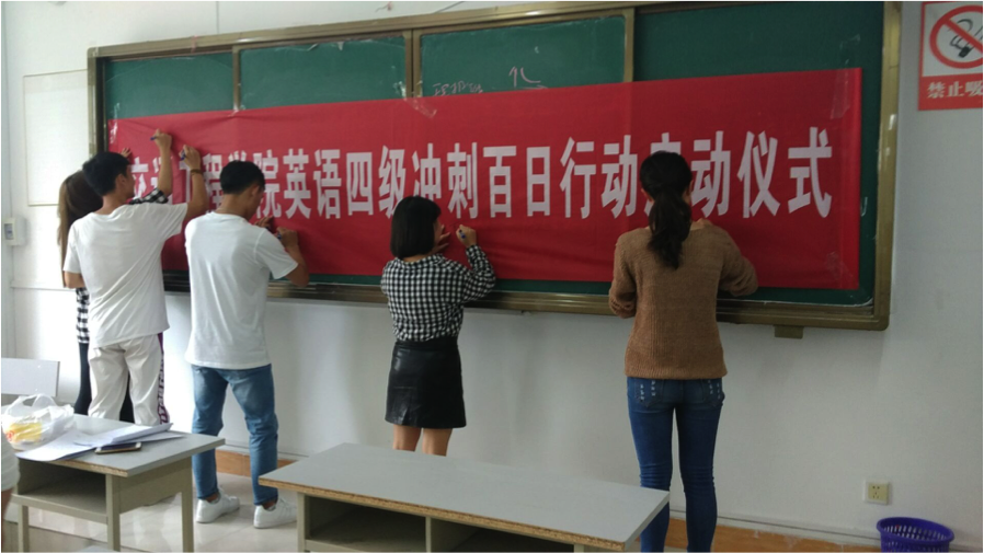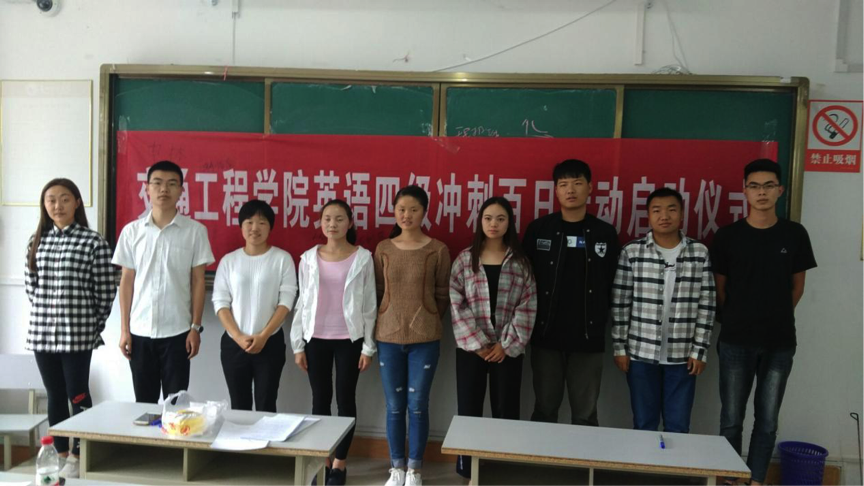 本网讯(交通工程学院 苏利荣)为进一步提高学院英语四级过级率,交通工程学院于近日特聘请专业英语老师开设英语四级培训班,帮助同学们强化训练,增强信心。9月7日下午,交通工程学院英语四级冲刺百日行动正式启动,学院党总支李学明、学生科苏利荣、周谦等老师及全体培训班学员参加启动仪式。