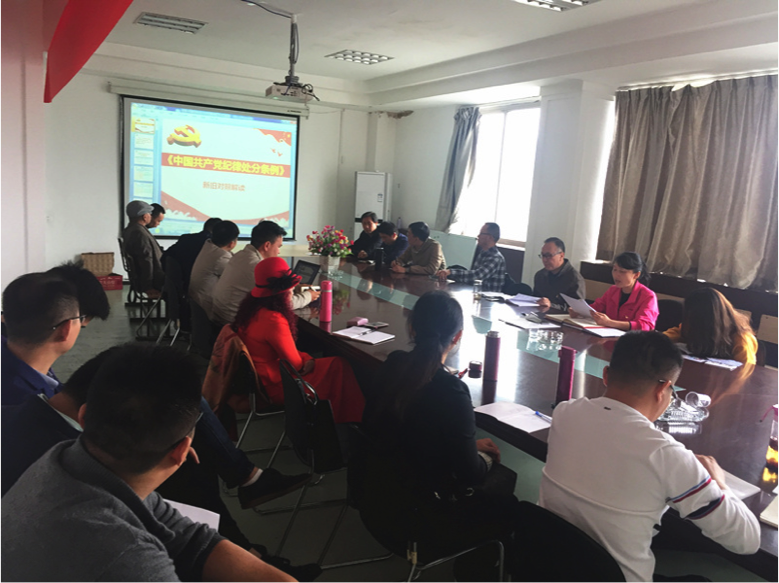 本网讯(矿业工程学院 魏玮) 为进一步推动党员干部作风建设,增强纪律意识,9月28日,矿业工程学院党总支组织党员教师集中学习新修订的《中国共产党纪律处分条例》(以下简称《条例》),学院党总支书记詹凤合领学。